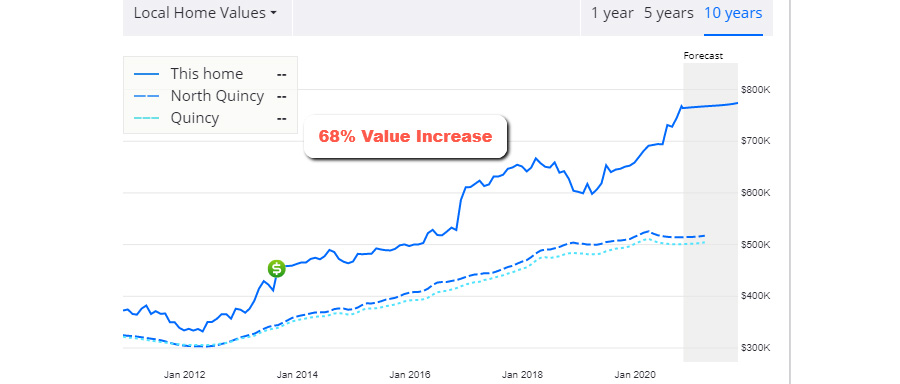In 2013 I was fortunate to have the foresight to invest in a growing housing market in an up and coming location. This equity of almost $400,000 will be parlayed into my next real estate venture on the South Shore of Massachusetts.